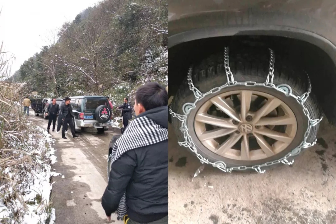 3天后,天氣稍微好轉(zhuǎn)。雖然仍天寒地凍,但機(jī)不可失,衣著單薄的民警們決定立刻實施行動。但是山路崎嶇,冰凍嚴(yán)重,車輛必須安裝防滑鏈才能緩慢前行,稍有不慎,路邊即是萬丈深淵,十分危險。上山途中,有幾次車輛遇坑,需要數(shù)人下車推動才能挨得去……