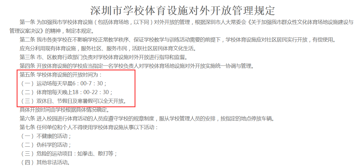 《深圳市學校體育設(shè)施對外開放管理規(guī)定》部分內(nèi)容