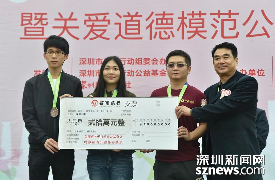 值得一提的是,在活動現(xiàn)場還舉行了“公益金百萬行”助學金捐贈儀式,為深圳大學、深圳職業(yè)技術學院、深圳信息學院三所高校各捐贈了20萬元,用于資助這三所學校的困難學子。迄今深圳特區(qū)報讀者公益慈善基金已資助1613名貧困大學生,累計資助金額達409萬元。