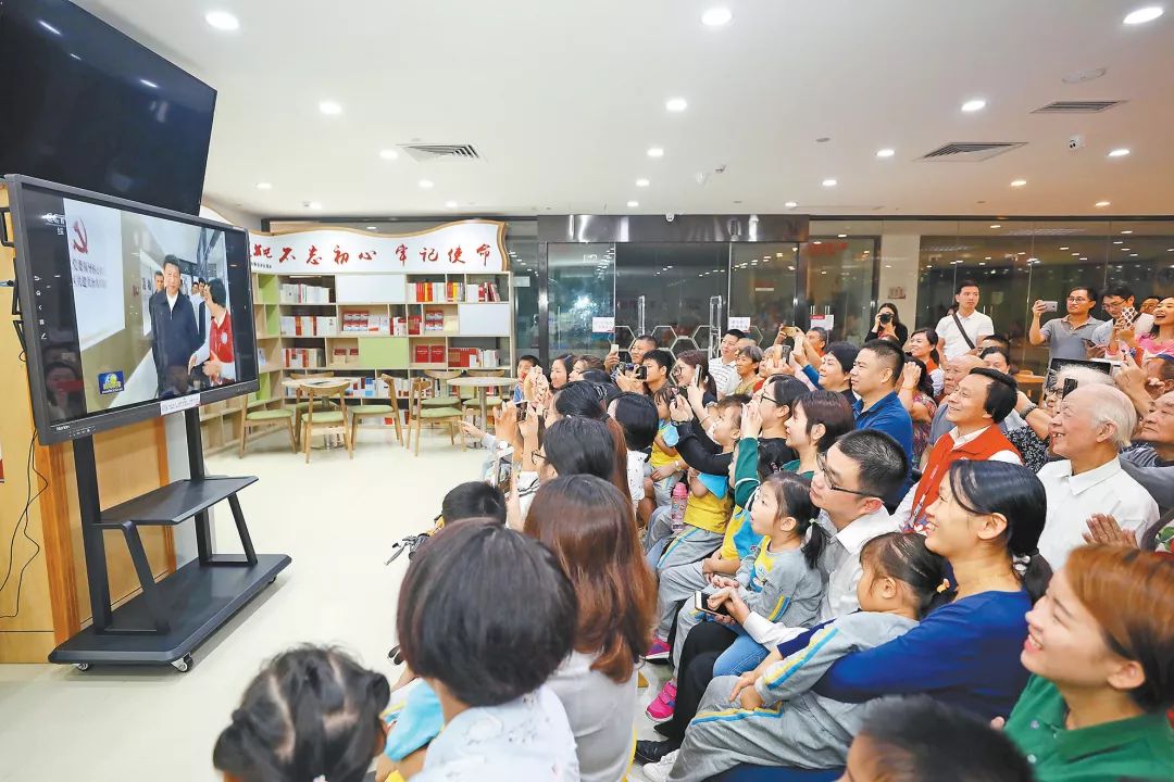 社區(qū)群眾在深圳北站黨群服務(wù)中心觀看習近平總書記在廣東視察的新聞。