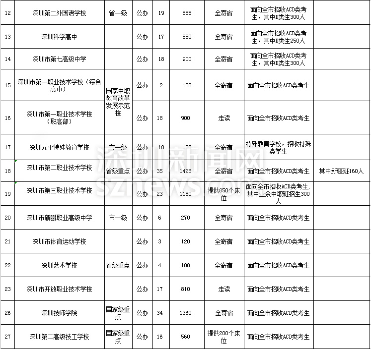 記者查閱了深圳市教育局2018年發(fā)布的高中階段學校招生計劃表。除去民辦學校,深圳共有71所公辦高中階段學校(含普高、職高)參與招生,其中普高占50所,提供34379個學位。