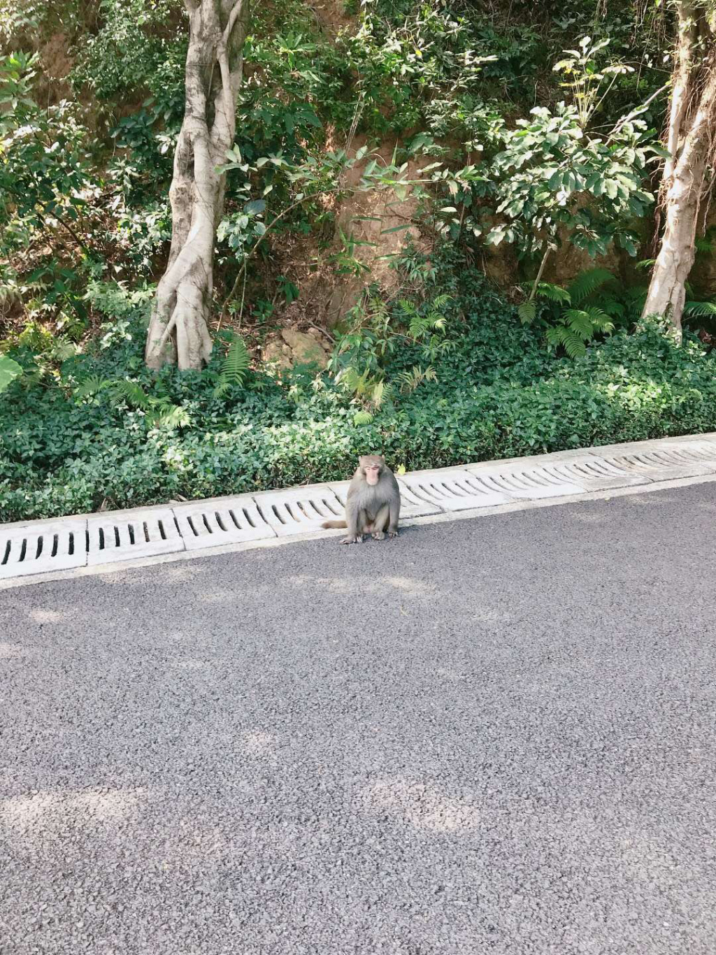 "這個(gè)東西很聰明,愛(ài)吃蘋(píng)果、香蕉和糖果,估計(jì)有三四十斤重,很肥。"今天上午,記者前往梅林山公園探訪猴子的蹤影。從梅山苑二期的梅林山公園入口一上公園主干道,記者就發(fā)現(xiàn)保安員陳先生正在路邊值守,梅林山公園管理處發(fā)現(xiàn)猴子后,就安排了保安員巡查看護(hù)。陳先生告訴記者,20日早上7點(diǎn)多猴子就出現(xiàn)在路邊,當(dāng)時(shí)公園人少,沒(méi)有討到吃的就走了。上午10點(diǎn)多,乘著游玩的人多猴子又跑出來(lái)湊熱鬧,保安員發(fā)現(xiàn)后拿了香蕉、橘子和糖果給它,猴子也一點(diǎn)不客氣,從人手里接過(guò)來(lái)就吃。原本靜謐的公園隨著猴子的出現(xiàn)熱鬧起來(lái),圍觀的市民也紛紛慷慨解囊。這只胖乎乎的猴子一點(diǎn)也不怕人,最近時(shí)距離人不到一米遠(yuǎn),大家也親切叫它"肥仔"。