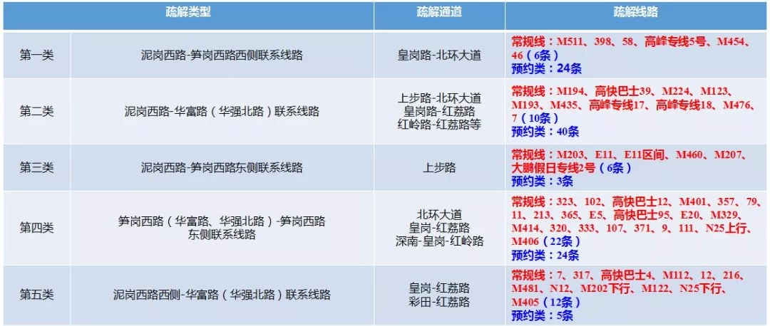3.臨時(shí)改道線路54條:封閉施工期間,途經(jīng)泥崗西路、筍崗西路、華富路、華強(qiáng)北路的54條公交線路、高峰專線、高快巴士臨時(shí)改道繞行。(詳見(jiàn)圖4)