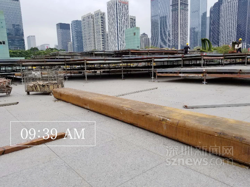 深圳建筑設(shè)計(jì)總院有限公司總工程師王啟文告訴記者,市民中心南廣場(chǎng)地下兩個(gè)地下室,也就是舞臺(tái)最重的部位下方是空的,舞臺(tái)跨越地下室的跨度為9米,從兩側(cè)懸挑。最重的部位達(dá)37噸,正好在承重力最小的中間部位。