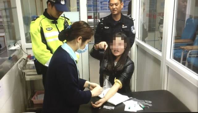 交警:來,酒精測試。最后一次機會,小姐。我現(xiàn)在警告你,再不配合立即去抽血,不要在這里裝,一堆人服侍你,如果你想上頭條,我配合你。