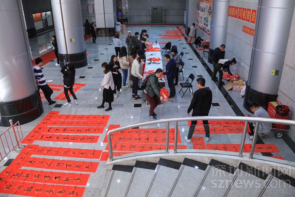 深圳商報大廈一樓變成春聯的世界
