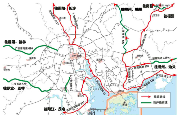 江羅高速、廣佛肇高速,有望緩解廣昆沿線各高速(廣云、云梧等路段)在高峰期車流壓力,廣中江高速提供了前往江門、中山的新通道,仁深高速新豐至博羅段通車,粵北地區(qū)再添一條出省通道。