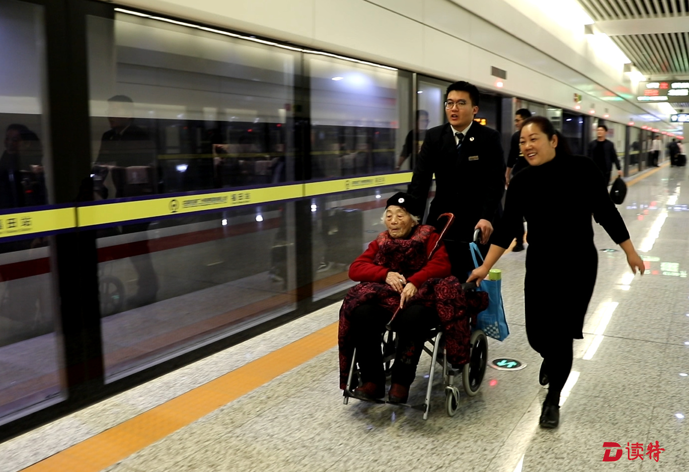 前兩天,站里剛剛接到過一位返鄉(xiāng)老人對李樹森的表揚。70歲的旅客張爺爺帶著坐在輪椅上90多歲的老母親,在福田高鐵站坐高鐵回駐馬店老家過年,由于年紀太大又是第一次來到這里坐車,因此特別不知所措?!霸诤蜍囀?,小李一看到我們就主動上來幫忙了,又是推輪椅又是拿行李,怕我們被擠到摔倒,帶我們提前走特殊通道檢票,一路把我們送上車。到了車上,他還專門叫來乘務員,仔細交代我倆的情況。如果沒有他,我們兩個老人家,這次都不知道能不能順利到家呢!”張爺爺在電話里感激地說道。