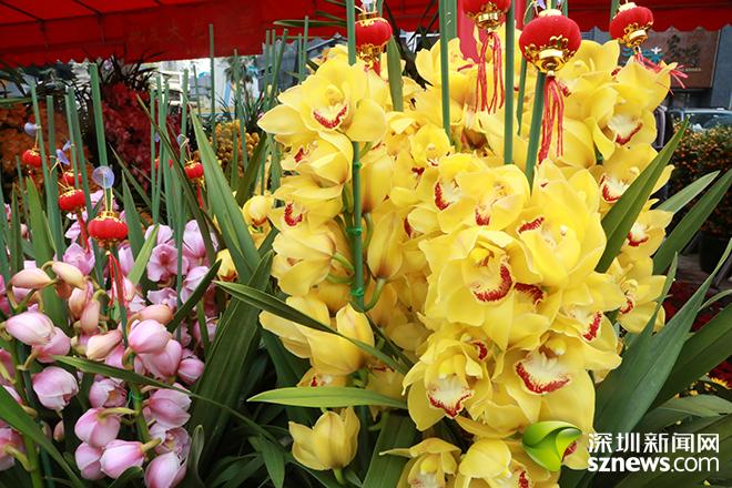 記者看到,花市現(xiàn)場各類鮮花嬌艷欲滴,有吉祥如意的年桔、大富大貴的黃金果、花姿優(yōu)美的蝴蝶蘭、嬌艷欲滴的郁金香等。各類年貨商品琳瑯滿目,金魚、長壽龜也為花市增添了不少生氣。不少市民帶著家人朋友一起逛花市,精心挑選年花年桔和春聯(lián)年貨。