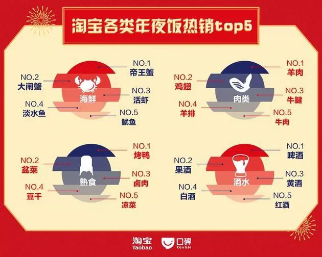 海鮮、肉類(lèi)、熟食、酒水是消費(fèi)者最?lèi)?ài)在淘寶采購(gòu)的四類(lèi)年貨。而啤酒則贏過(guò)白酒、黃酒,成為中國(guó)人最?lèi)?ài)選的年夜飯酒水。