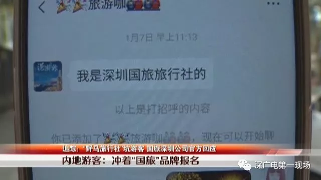 深圳市消費(fèi)者委員會楊秀鋒:接到消費(fèi)者投訴之后呢,我們跟消費(fèi)者、市旅游局、旅游行業(yè)協(xié)會,還深圳國旅進(jìn)行了溝通。深圳國旅確定這家消費(fèi)者加入團(tuán)的公司,是一家野馬旅行社。
