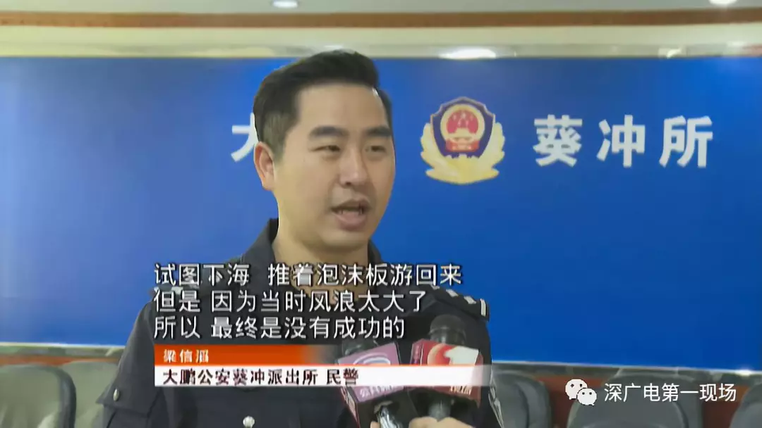 據(jù)大鵬公安葵沖派出所民警介紹,當(dāng)時(shí)兩個(gè)小孩漂得挺遠(yuǎn)了,其中一個(gè)想試圖下水把泡沫板推回去,但是失敗了。
