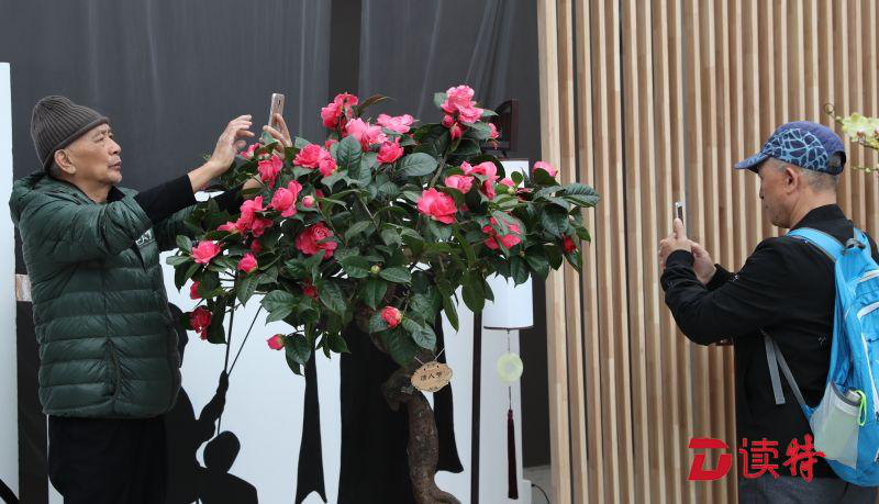花卉館內(nèi)的室內(nèi)展區(qū)是此次茶花展的一大亮點(diǎn)。"佳境"、"夢境"、"意境"、"秘境"、"禪境"5個(gè)觀賞區(qū),營造出不同的茶花文化意境。其中"佳境"將擺放特色茶花盆栽,讓游人進(jìn)入到茶花營造出的簡潔雅致的意境中;"夢境"利用"古樹"結(jié)合展示茶花插花藝術(shù),打造了夢幻的展示空間;"意境"以茶花切花花藝作品為主,結(jié)合茶花本身的特性與中式元素,展示意境唯美、充滿古韻的茶花插花作品。"我最喜歡‘秘境’,茶花盆景和山水盆景配上中式花幾和屏風(fēng),是濃縮的雅致山水呀。"63歲的孟先生由衷贊賞,"這是以情調(diào)韻味取勝,太美了!"而他的老伴喬阿姨則最喜歡"禪境":"茶花盆景搭配中式鏤空屏風(fēng),簡直像一幅畫,水中還有倒影虛實(shí)結(jié)合,很有意境!"