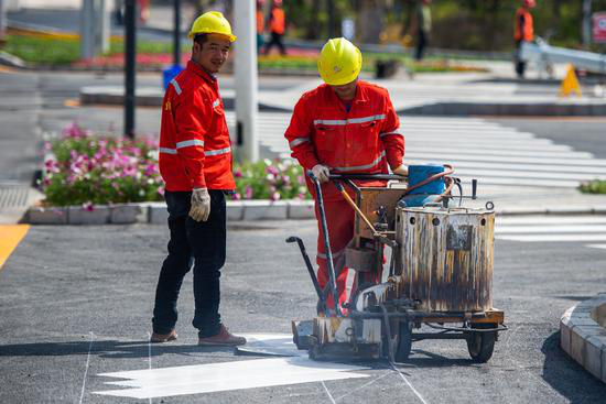 路面標(biāo)線正加緊施畫。