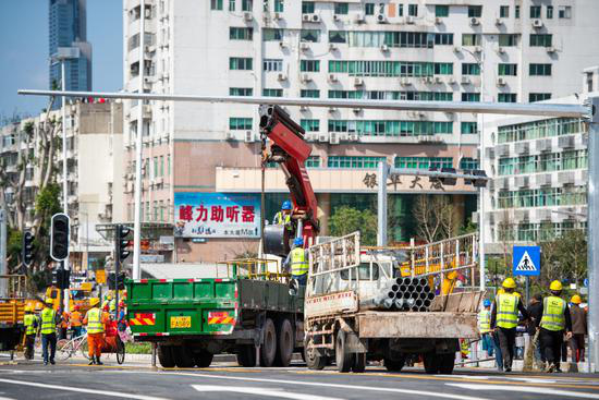 工人們奮戰(zhàn)在一線。