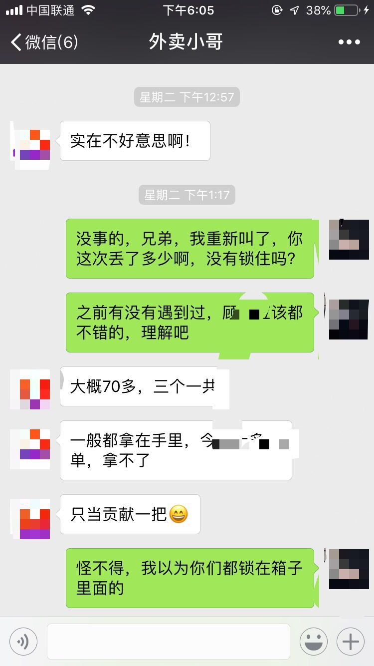 記者聯(lián)系到了當(dāng)事外賣小哥顏先生。"我的電動車停在福田區(qū)文化創(chuàng)意園世紀(jì)工藝廣場那里,就三個餐沒提完,放在箱子里面,幾分鐘出來后,下樓就沒了。"據(jù)了解,三份外賣總價值約70元。外賣被偷后,顏先生立即聯(lián)系了三位顧客道歉并說明情況,并照價賠償了點(diǎn)餐費(fèi)。"很多時候,我們都會把所有外賣都拿在手上,但那天有10多份,拿不了那么多,就當(dāng)貢獻(xiàn)一把了。"