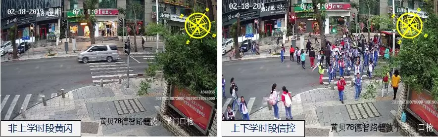 為了保障學生安全過街,深圳交警恢復黃貝/德智路口上下學時段信號燈管控模式,非上下學時段啟用黃閃控制模式。