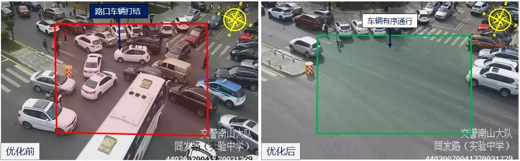 2月17日下午,接送學生至深圳實驗學校的車輛較多,大量車輛??柯愤吪抨牭群?影響車輛通行效率,導致同發(fā)/新高路口車輛溢出,深圳交警根據(jù)現(xiàn)場情況,采用步伐保持放行,優(yōu)化路口配時參數(shù)及綠信比,快速疏解同發(fā)/同沙路口北面車輛,防止同發(fā)/新高路口打結(jié)。