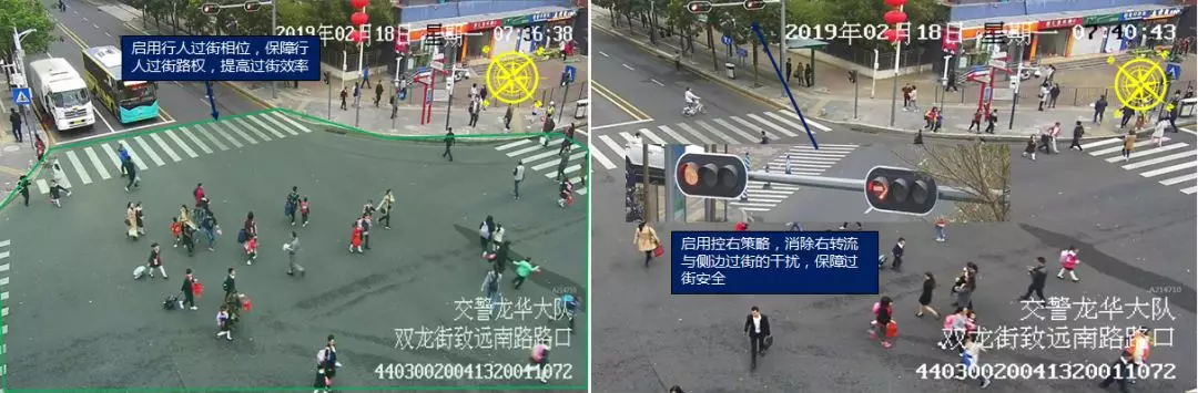民治街道玉龍學校周邊信號路口致遠/龍匯路口在上學時段啟用機動車控右策略,在開學當天上下學時段通過對機動車采取控右策略,避免右轉(zhuǎn)流與側(cè)邊行人過街的干擾,消除安全隱患。