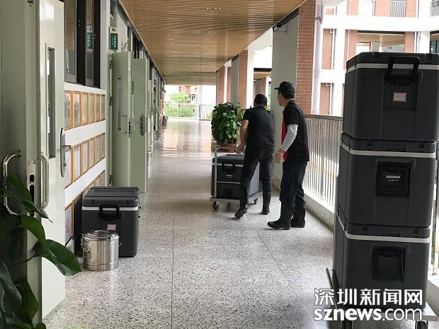 送餐人員在上午課程結束前將午餐送到每個班級門口