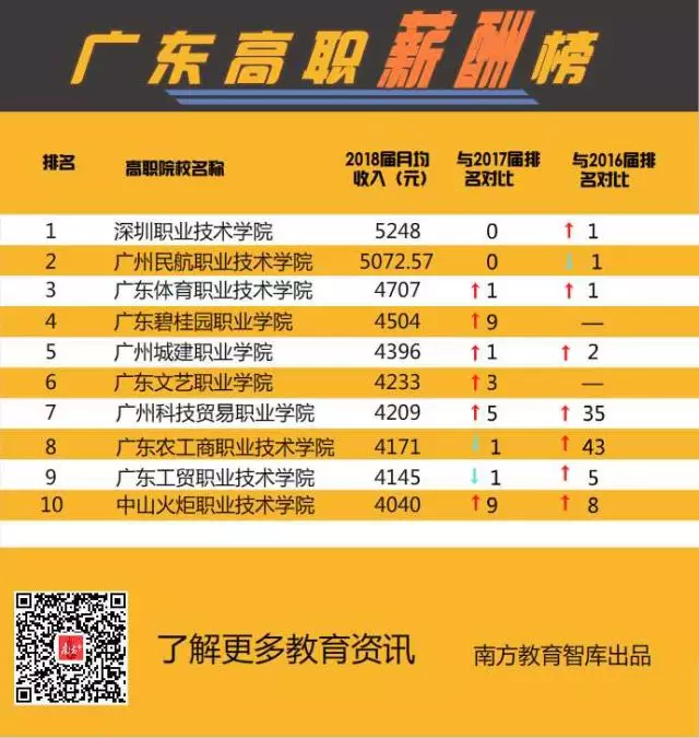 ▲廣東高職薪酬10強,深職院、廣州民航平均月薪超5000元,超過不少本科院校。