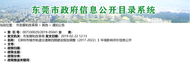 2月22日,東莞市發(fā)展和改革局在其官網(wǎng)發(fā)布了《深圳市城市軌道交通第四期建設(shè)規(guī)劃調(diào)整(2017-2022)》環(huán)境影響評價信息公開。