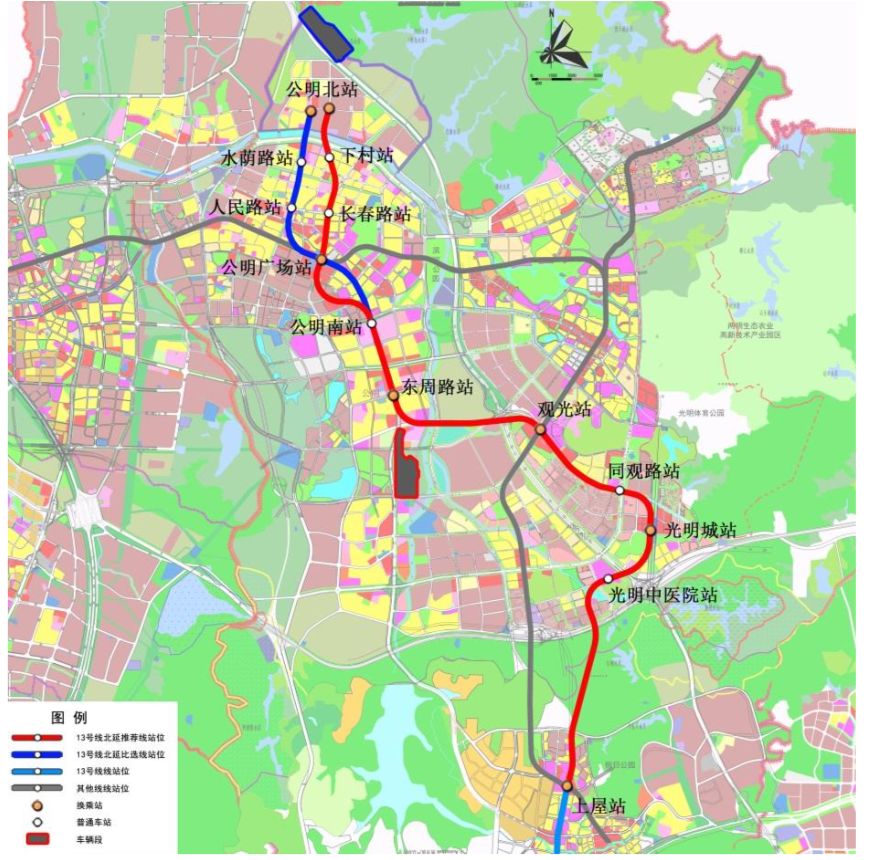 13號(hào)線北延線連接光明鳳凰城、公明中心等地區(qū),并通過已建成運(yùn)營(yíng)的13號(hào)線連接至南山后海,是聯(lián)系光明新區(qū)與南山中心的市域快線。