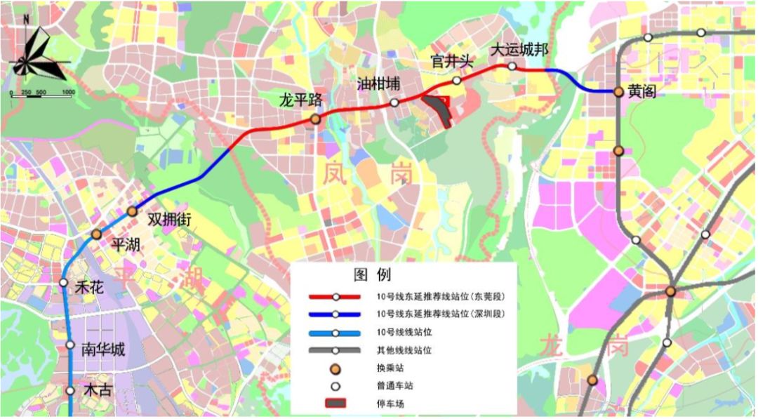 10號線東延是聯(lián)系平湖、東莞鳳崗及大運(yùn)新城的普速線路,主要功能為加強(qiáng)龍崗中心城與平湖、坂雪崗的聯(lián)系、促進(jìn)深莞一體化。東延線路由在建地鐵10號線雙擁街站后引出,出站后轉(zhuǎn)向東北方向,下穿鳳凰山國家礦山公園,之后進(jìn)入東莞,東莞段內(nèi)沿龍平路敷設(shè),在東北師大益田小學(xué)北側(cè)向東南下穿武深高速、鹽龍大道進(jìn)入清林路,接至在建16號線黃閣站。線路全長約9.8km,設(shè)站5座,采用地下敷設(shè)方式。