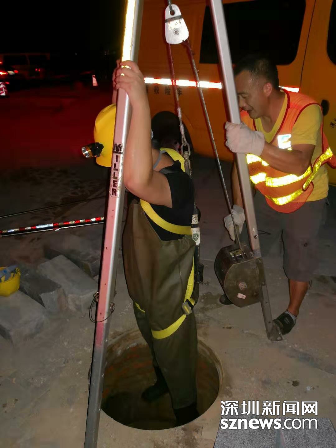 深圳的夏天很長,隨時(shí)趕上用水高峰,加上白天天氣炎熱,這種下井摸排通常在午夜進(jìn)行。