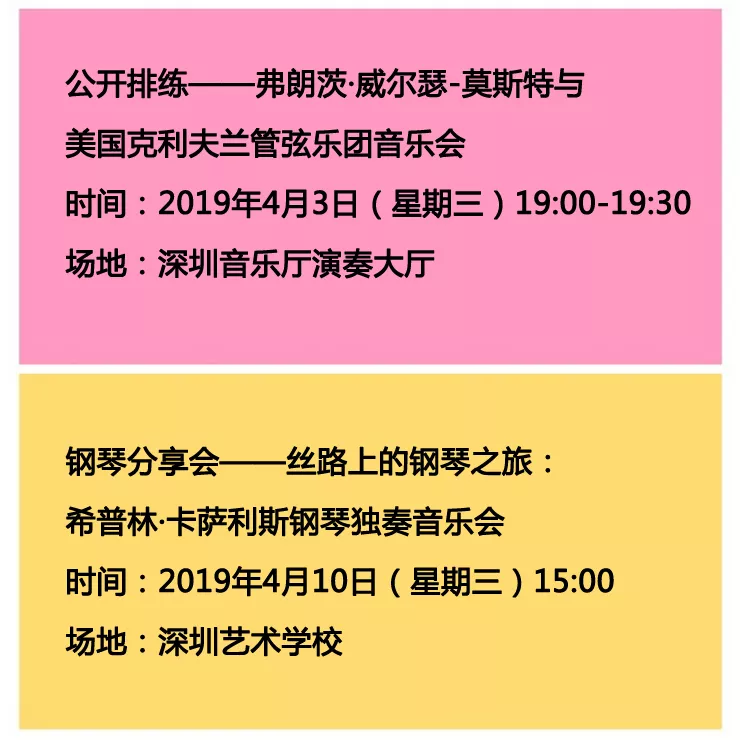 2019深圳“一帶一路”國際音樂季秉承文化惠民的原則,高品質(zhì)演出的門票價(jià)格平易近人,最低票價(jià)至100元/張。更有超值優(yōu)惠的學(xué)生票,部分演出免費(fèi)免票。