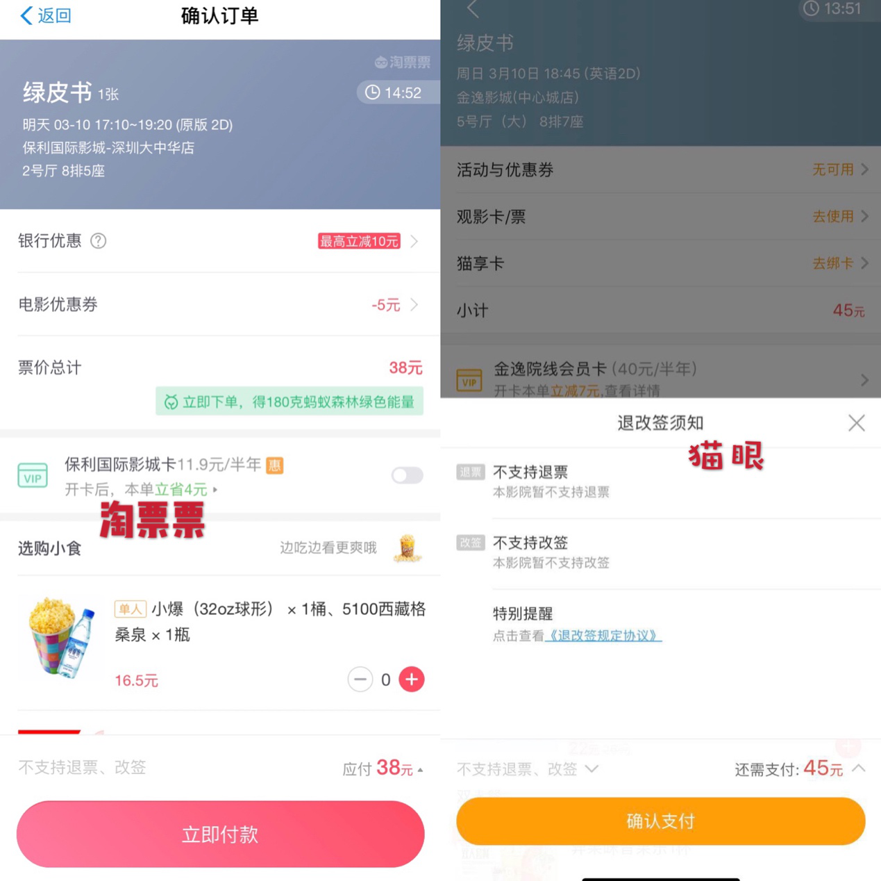 記者日前以熱映的電影《綠皮書》為例,在手機(jī)上查看福田各大影院“退改簽”情況。據(jù)統(tǒng)計(jì),貓眼APP上當(dāng)天的同一時段也有22家電影院可以購票,其中有7家電影院不支持“退改簽”,4家電影院僅支持“改簽”,11家電影院支持“退改簽”;淘票票APP上當(dāng)天的同一時段共有22家電影院可以購票,其中有10家電影院不支持“退改簽”,占比不到50%。