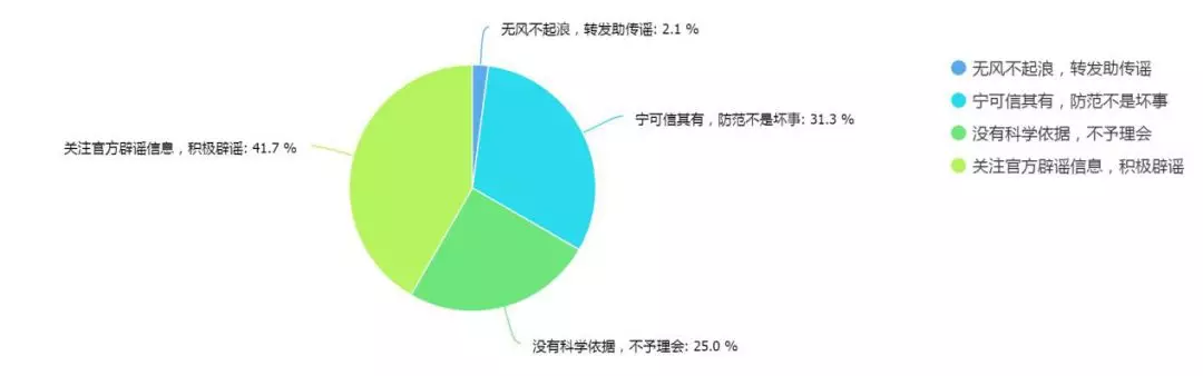 “舌尖上的謠言”長期在朋友圈里“屢辟屢傳”,其中一個(gè)重要原因是因?yàn)橄M(fèi)者有著極大的安全焦慮。食品謠言的存在,不僅說明了消費(fèi)者在相關(guān)科學(xué)知識(shí)方面的空白,也反映出社會(huì)對食品安全的擔(dān)憂。不過經(jīng)過相關(guān)部門和媒體的大力宣傳,已經(jīng)有41.7%的受訪者會(huì)主動(dòng)關(guān)注官方辟謠信息,積極辟謠。