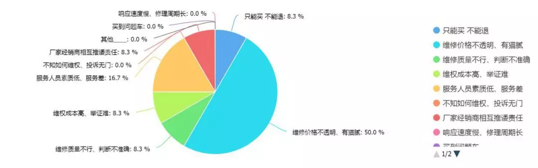 本次調查問卷顯示,網(wǎng)友覺得汽車質量問題集中在發(fā)動機和車身附件及電器,而在質量維修上,有50%的消費者認為維修價格不透明、有貓膩,維修保養(yǎng)服務令消費者最不滿意的部分則是久修不愈。