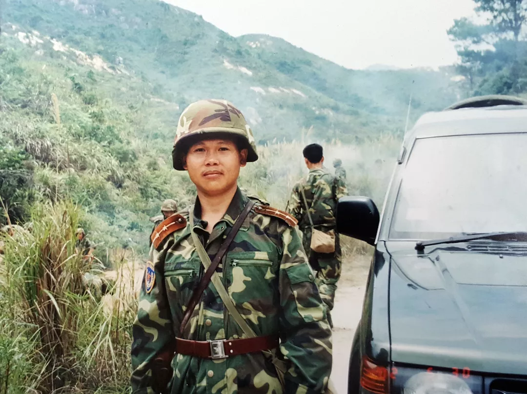 駐港四年,他當(dāng)過連隊(duì)指導(dǎo)員、帶過新兵、參加過重大保障工作。駐港部隊(duì)對(duì)指戰(zhàn)員的要求極其嚴(yán)格,就算在軍營里走路,也要保持著“兩人成行、三人成列”的自覺。他作為指導(dǎo)員,更是嚴(yán)于律己,言行如一,做出表率。