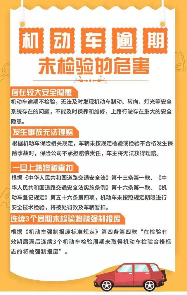 (三)小型非營運(yùn)載客汽車6年以內(nèi)每2年檢驗(yàn)1次;微型(7座以下)非營運(yùn)載客汽車6年以內(nèi)免檢,行駛證副頁免簽注。超過6年的,每年檢驗(yàn)1次;超過15年的,每6個(gè)月檢驗(yàn)1次;