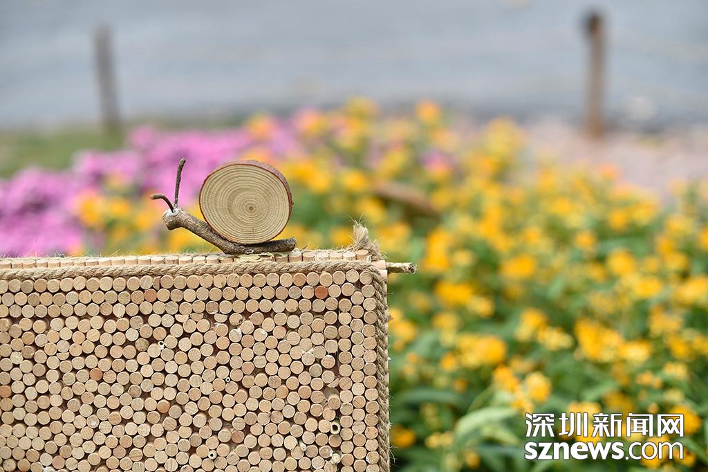 由木頭設(shè)計(jì)的“木頭蝸牛”點(diǎn)綴在花海中
