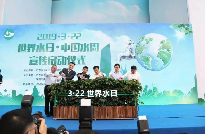 現(xiàn)場(chǎng)領(lǐng)導(dǎo)用取自于深圳灣體育中心大樹廣場(chǎng)收集回用的雨水,共同澆灌象征著綠色、希望的生命之樹,來正式啟動(dòng)“世界水日”“中國(guó)水周”宣傳活動(dòng)!