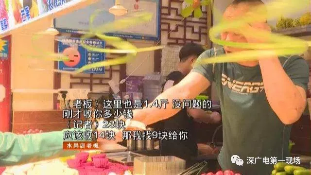 記者按照劉小姐指引,找到該水果店,買了2斤3兩的現(xiàn)切水果,但是這號(hào)稱2.3斤的水果實(shí)際只有1.4斤。記者的質(zhì)疑引來(lái)一名自稱是老板的男子,他在同一個(gè)秤上,親自幫記者稱那盒水果,結(jié)果稱出來(lái)的也是1.4斤。