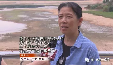 記者也跟隨瀅水山莊一區(qū)居民來到小區(qū)靠近民治水庫的一側(cè),可以明顯聞到有一股腥臭從民治水庫方面飄來,并且,民治水庫里面的水也基本上被抽干,遠處的大壩上,有不少工人正在施工。小區(qū)居民告訴記者,正對著水庫的幾十戶居民受影響更加嚴重。