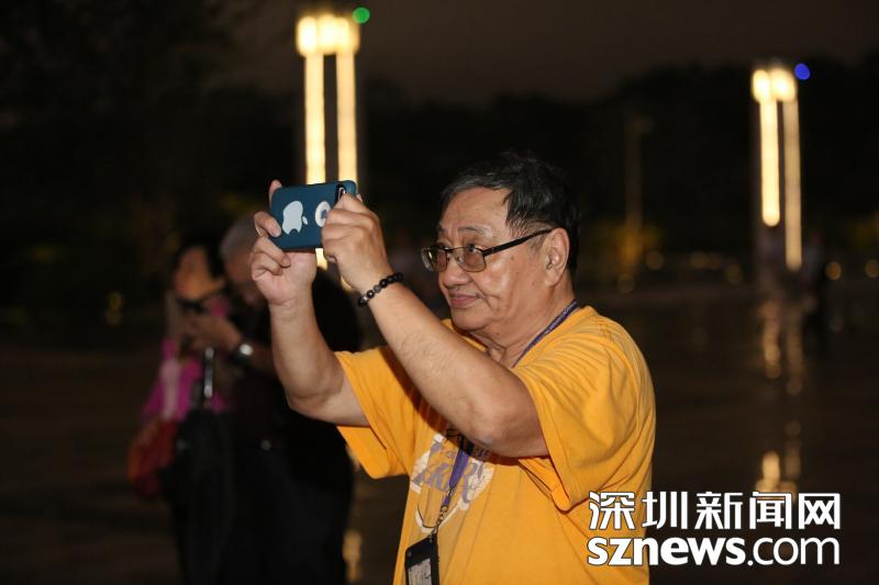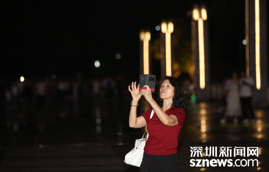 市民們紛紛拿出手機拍攝燈光秀演出。