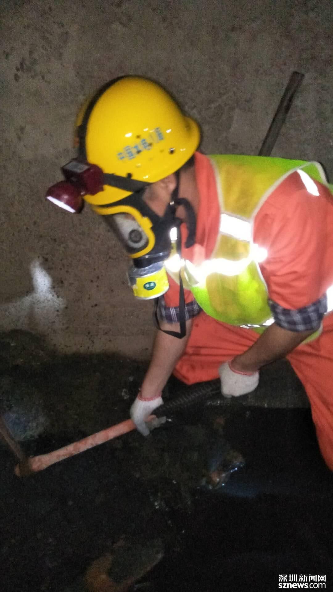 據(jù)悉,皇崗河暗渠作業(yè)屬于有限空間作業(yè),(指與外界相對隔離,進出口受限,自然通風不良,足夠容納一人進入并從事非常規(guī)、非連續(xù)性作業(yè)的有限空間。)而有限空間容易出現(xiàn)缺氧窒息、中毒、火災和爆炸等其他威脅生命安全的危險。經(jīng)了解,暗涵內(nèi)有毒有害氣體濃度較高,施工人員都是戴著氧氣罩、穿著救生衣、攜帶便攜式有毒有害氣體檢測儀全副武裝下涵作業(yè)的;淤積厚度超過預期,施工過程中不確定因素很多,管涌和“堰塞湖”現(xiàn)象給施工帶來了巨大風險。