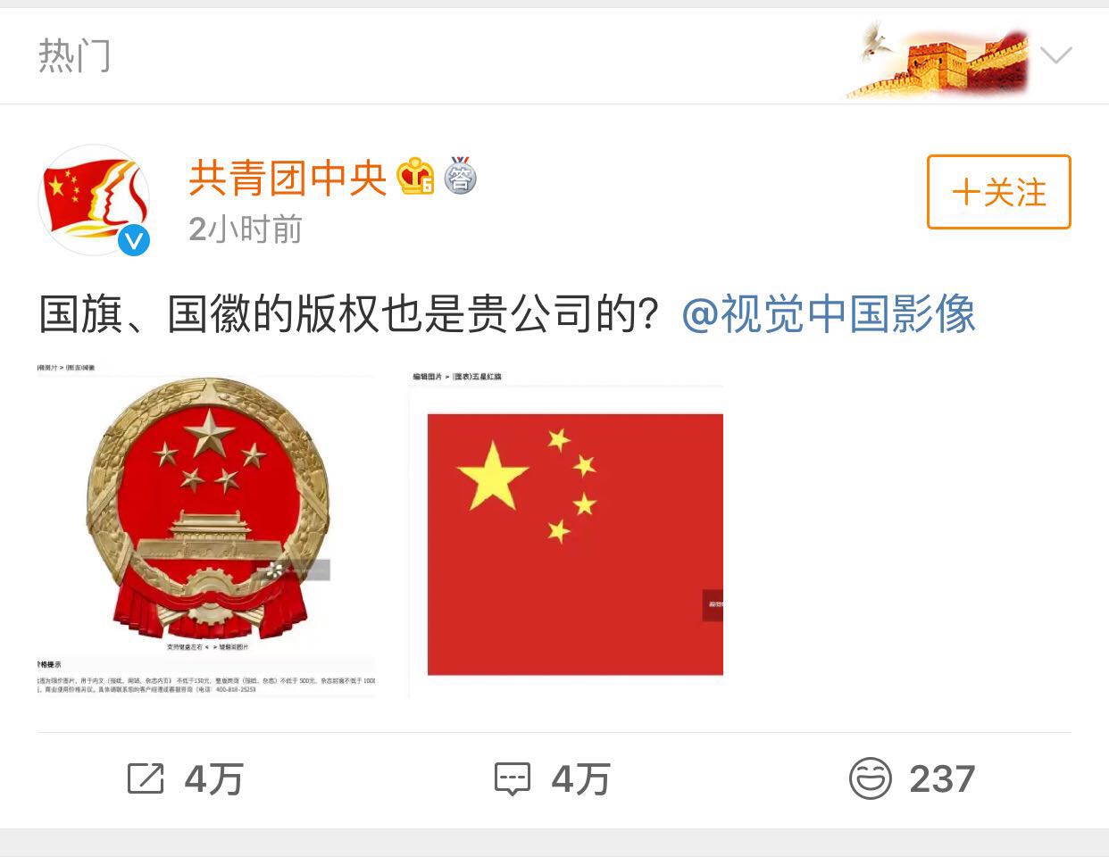 說個題外話,聽說這黑洞照片的版權(quán)是視覺中國的。。。還聽說國徽、國旗的版權(quán)也是視覺中國的