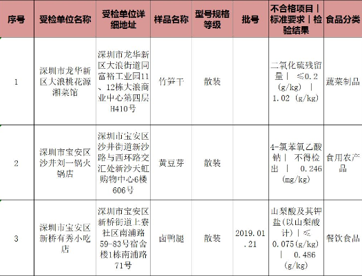 糧食加工品不合格樣品為濕面條,不合格受檢單位是深圳市羅湖區(qū)肥娘粉面店,不合格項(xiàng)目為苯甲酸及其鈉鹽(不得使用)。