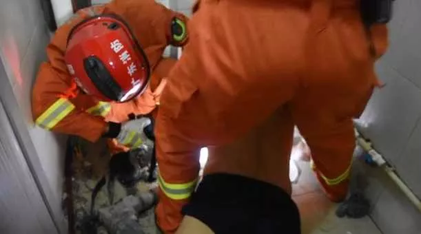 一名男子手被卡在蹲便池中動彈不得