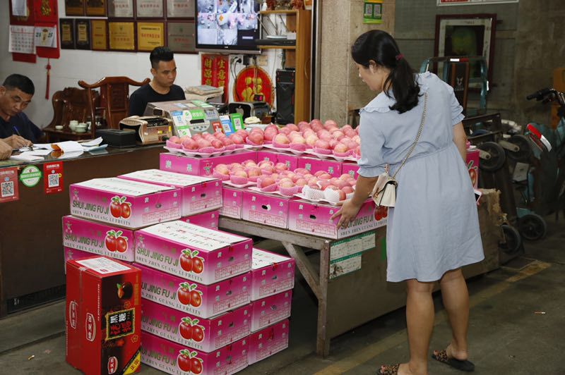 深圳市場(chǎng)銷(xiāo)售的蘋(píng)果多以山東、山西、陜西、新疆等產(chǎn)地為主。福田農(nóng)批市場(chǎng)水果交易區(qū)林經(jīng)理告訴記者,今年蘋(píng)果因?yàn)楫a(chǎn)地收購(gòu)價(jià)格飆升,蘋(píng)果總體的價(jià)格都明顯上漲了。