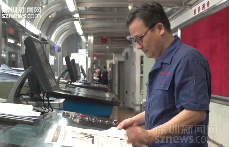 凌晨3時(shí),深圳報(bào)業(yè)集團(tuán)印刷廠工程師老徐在查看報(bào)樣(秦川 涂勝 齊釗遠(yuǎn))