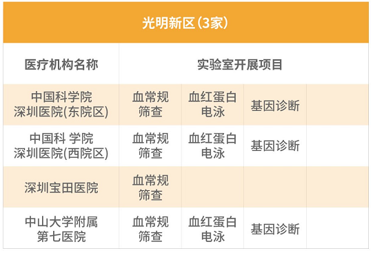 2017年起,深圳市針對常住孕婦夫婦開展免費地貧篩查項目,包括:新婚及計劃懷孕的深圳常住人口夫婦;孕前未接受地貧篩查的、夫婦雙方或一方為深圳常住人口的懷孕夫婦。