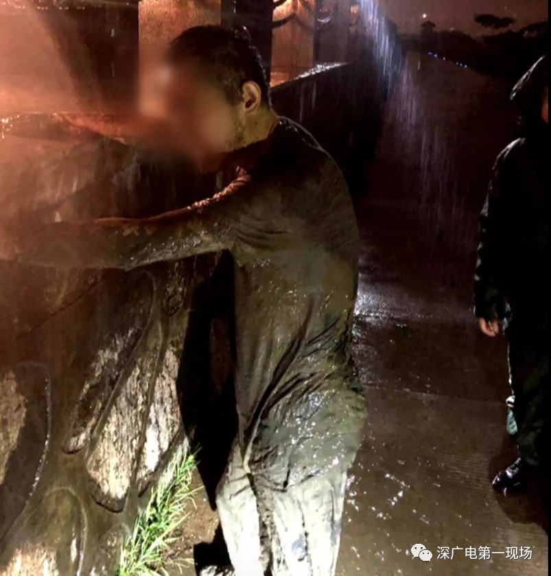 聽到呼救后的武警迅速出動(dòng),然后救出了滿身淤泥的他↓↓↓