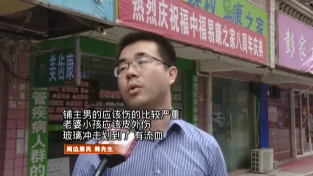 據(jù)目擊者稱,當時店鋪內(nèi)有老板一家三口,以及一名女顧客,四人均有不同程度受傷。周邊居民馬上報警,并呼叫了救護車。