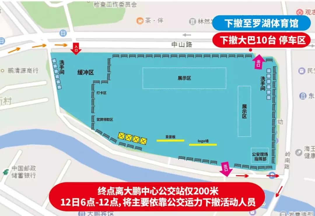 深圳大運(yùn)中心(起點(diǎn):0KM)→龍飛大道→龍翔大道→愛南路→龍崗河綠道→沙荷路→大望文化高地→望桐路→梧桐山村→梧桐驛站(補(bǔ)給點(diǎn):28.4KM)→譚仙廟→小三洲(二簽及強(qiáng)制下撤點(diǎn):39.8KM)→云海谷體育公園(補(bǔ)給點(diǎn)及強(qiáng)制下撤點(diǎn):45.7KM)→光背村→上坪水庫(53.6KM)→小梅沙(強(qiáng)制下撤點(diǎn):57.3KM)→紅花嶺→坪山體育中心(三簽:56.9KM)→比亞迪路→金業(yè)大道→葵涌文化廣場(chǎng)(補(bǔ)給點(diǎn):69KM)→官湖綠道→大鵬文化廣場(chǎng)(終點(diǎn):85KM)